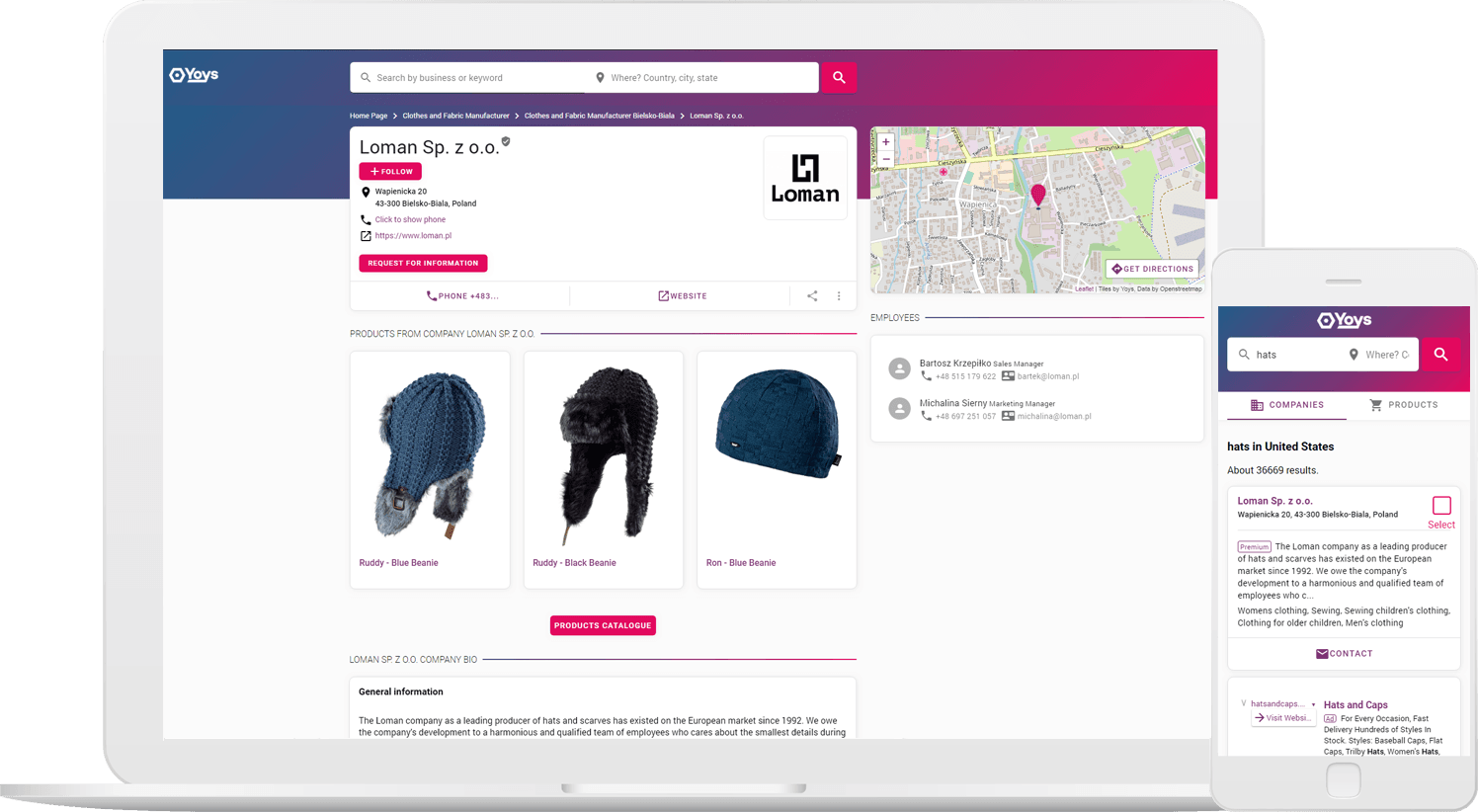Premium listing & product catalogue of a leading manufacturer of hats in Poland